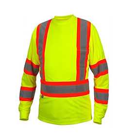 This Pyramex(R) Hi Vis Long Sleeve T-Shirt is made from a lightweight moisture wicking polyester material as well as 2" reflective striping with 4" contrast color trim for extra visibility. This style features a front pocket. This item is ANSI/ISEA Type 0 Class 1 standards.